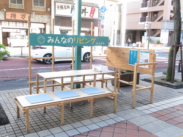 10月21日からはパークレット(大型ベンチ)を分割して商店街の各所に設置しています。